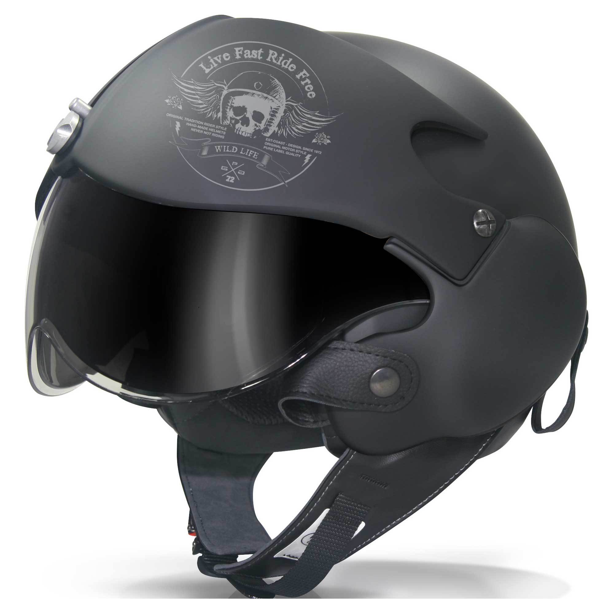 French manufacturer GPA have re-released a classic design in the Aircraft helmet. Previously known as the 'Osbe Tornado' (GPA having bought OSBE) it has distinct styling and an innovative visor system. The clear visor also has a retractable tinted visor behind it, a system unique to this helmet.
