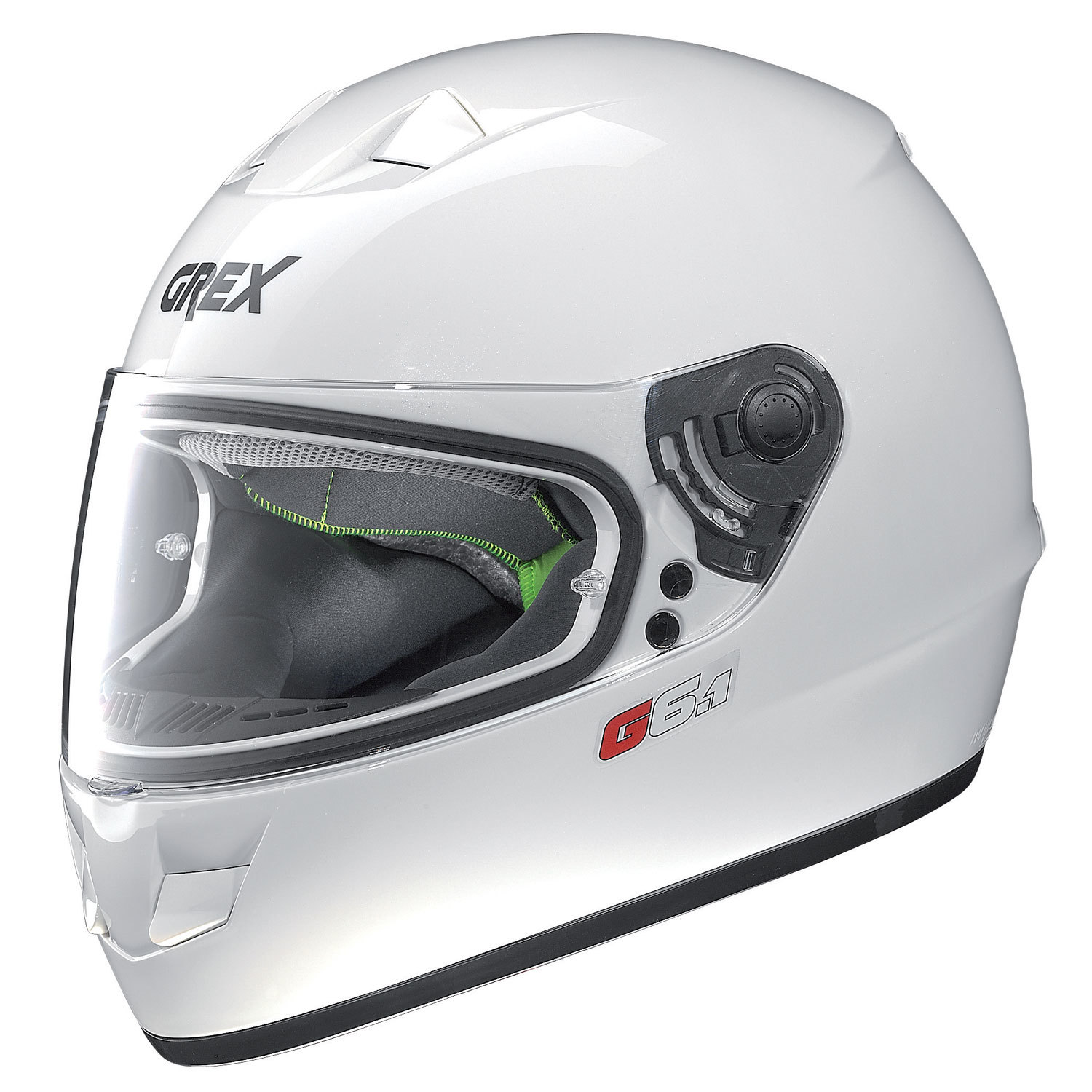 G6.1 is the new street full-face helmet from the Grex® collection, with a contemporary and appealing look. The visor, suitable for equipping with the Pinlock® anti-fog visor, is easily removable, without using tools. Ventilation of the new G6.1 is ensured by the air intakes positioned on the chin and in the upper part of the helmet, that ensures an ideal temperature in all conditions of use, thanks also to the rear extraction system. The interiors are easily removable and washable*.